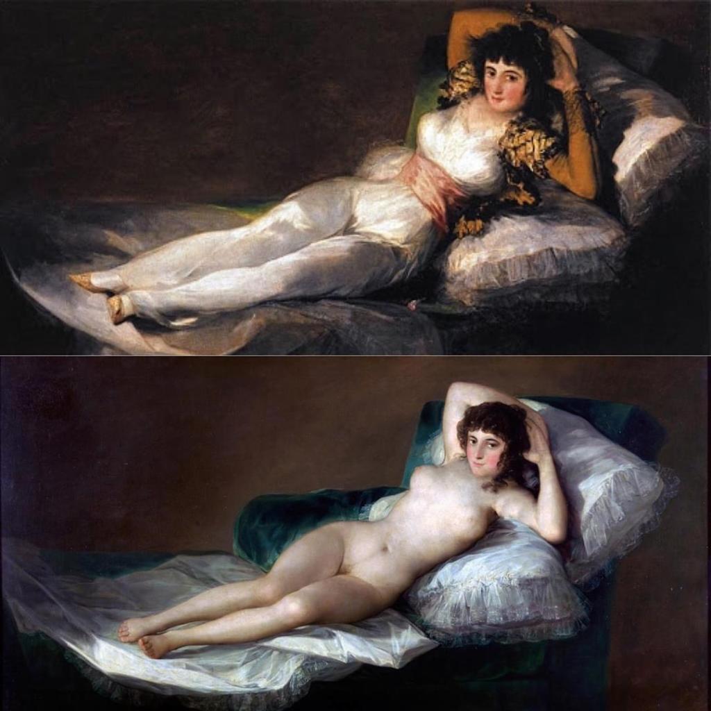 Insistió repetidamente Cayetana, la duquesa de Alba, una Grande de España, amantes con Goya, que la hiciera como maja. Repetidamente Goya se negó, hasta que accedió.