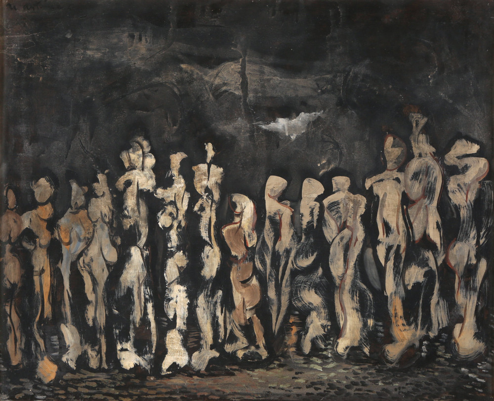 “Nos referimos al grabado que titula Habitantes de la ciudad. De esta pieza Antúnez imprimió gran número de variantes. Se trata de una simple yuxtaposición en diagonal de figuras semihumanas; imaginémonos algo peor que un leprosario. La vida se desnuda de ellas arrojándolas. Alguien se extiende, vacío, en el suelo. El movimiento, que es expresión de vitalidad, no figura aquí para nada”.