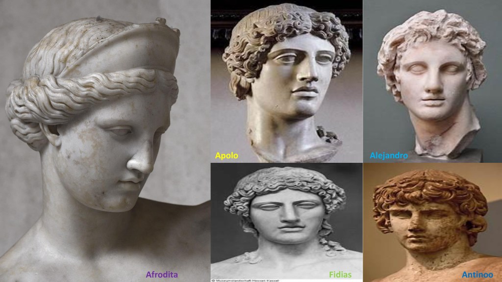 En la escultura griega clásica, “Ninguna parte del cuerpo humano es más significativa que el resto; los ojos son grandes y sin pupilas; los labios y cejas son apenas menos significativos que las manos, los senos y los pies”.