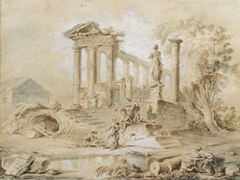 La ruina artificial era una forma de restablecer vínculos con la Antigüedad; no es casual que surgiera en vísperas de la Revolución Industrial. La artificialidad exacerbaba la melancolía por lo perdido; los ricos se regodeaban en su tristeza. Imaginen a un grupo de personas ociosas soñando en medio de bostezos y capiteles romanos con un pasado glorioso».