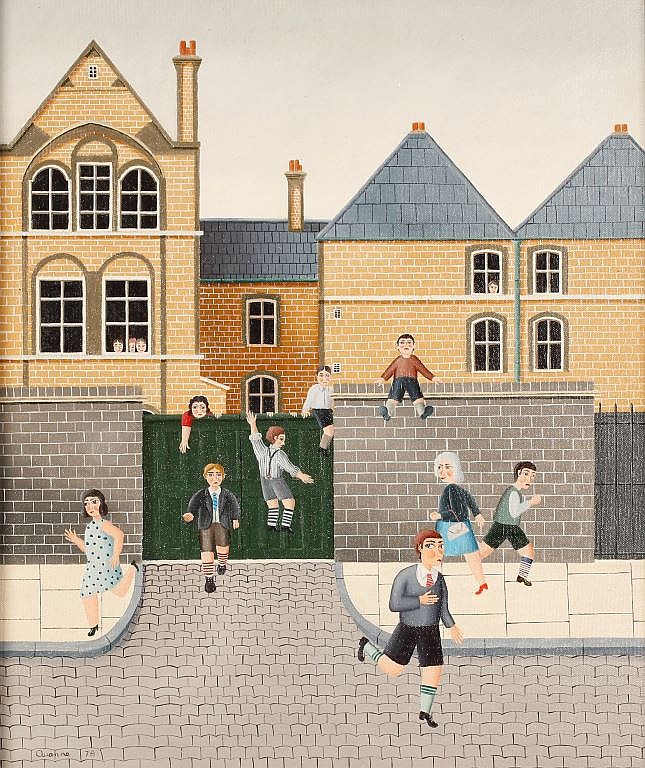 Por último, me gustaría señalar una dimensión en el arte de Michael Quanne que no se deriva de un entorno o medio social específico, sino que es universal: la presencia sentida de lo que no es visible. Cada uno de sus cuadros parece algo estudiado detenidamente desde una ventana, un exterior visto desde dentro o un interior visto desde fuera. Por supuesto, uno podría ver cualquier cuadro de esa manera. Pero en los de Michael Quanne, el espectador se hace conciente de que la ‘ventana’ está recortada en un muro que oculta algo. Lo que vemos transmite una inquietante sensación de lo que hay más allá del marco. El pie de la colina hacia el que se dirigen los patinadores. Lo peor -aquello que Quanne dice que prefiere no pintar-, los portones de la prisión, el banquillo de los acusados, el uniforme. El lugar misterioso del que proceden los animales. El cielo en el que volará la cometa. El jardín exterior para el que se hicieron los triciclos que hay dentro… Este es un libro compuesto de imágenes de encarcelamiento… y sueños de libertad”.