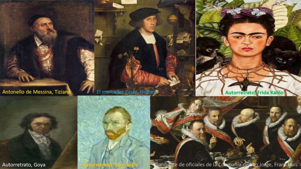 Un solo pintor nos alerta de un parteaguas. La mencionamos aquí porque no se trata de un rastreo del retrato y el autorretrato, sino de estudiar lo que más arriba mencionamos. Pintará como nadie Frans Hals, al decir de John Berger en su Sobre los pintores, “la personalidad momentánea del modelo. Con él nació la noción de ‘parecido elocuente’”. Después, vendría la convención y la hipocresía social (que volverá a romper Goya, con otros, décadas más tarde): “La espontaneidad de sus retratos, que tanto había gustado a sus contemporáneos, pasó de moda con la siguiente generación, la cual empezó a demandar unos retratos que fueran más tranquilizadores desde el punto de vista moral; lo que pedía, de hecho, eran los prototipos de ese retrato oficial burgués e hipócrita que desde entonces no ha dejado de practicarse”. Pero antes, en su cuadro de la compañía de guardias cívicos resalta el retrato del capitán Michiel de Wael y en él, “su mirada es la de un hombre que está seguro de que es tan joven como la noche y de que todos sus compañeros lo saben … Hals está en el banquete … solo él podía pintar a sus compañeros como ellos deseaban. Sólo él podía salvar la contradicción que encerraba ese deseo. Cada uno de ellos tenía que ser pintado como un individuo claramente diferenciado y, al mismo tiempo, como un miembro natural y espontáneo del grupo”.