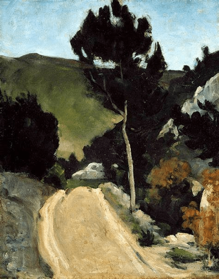 A medio metro de distancia la pintura parece una lluvia de confeti caída sobre el papel; dos pasos más atrás, la imagen se ordena en un caleidoscopio, un metro más atrás, las pinceladas dejan de ser pinceladas y una naturaleza vitalista (si esa expresión no es un pleonasmo) se te viene encima. Hay paisajes muertos y hay paisajes vivos, y este de Cezanne es de los segundos: en él las piedras, los árboles, la curva del camino, están electrificados como a 20.000 voltios. Me recuerda algo que suelo olvidar: que la tierra guarda en su corazón un brasero que provoca movimientos, erupciones y desvíos y que la vida surgió de la materia, idea científica sobre la Creación que se lleva a las piñas con la religión.