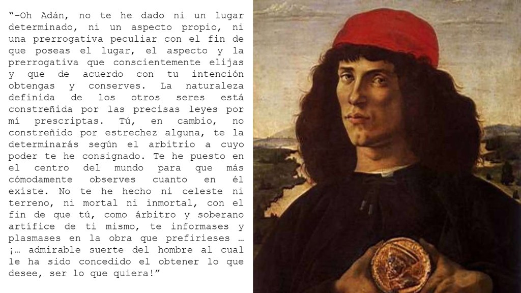 Discurso sobre la dignidad del hombre, Giovanni Pico della Mirándola 15 noviembre, 2025 • La vida infinita (Libros y Lecturas) Un Manifiesto del Renacimiento, del humanismo, que necesita un nuevo renacimiento, cuando parece podamos estar bailando en la oscuridad. Compártelo: Compartir en X (Se abre en una ventana nueva) X Comparte en Facebook (Se abre en una ventana nueva) Facebook Me gusta Cargando... Relacionado